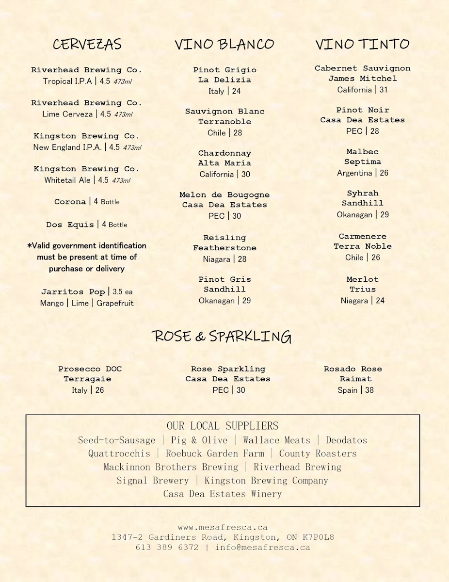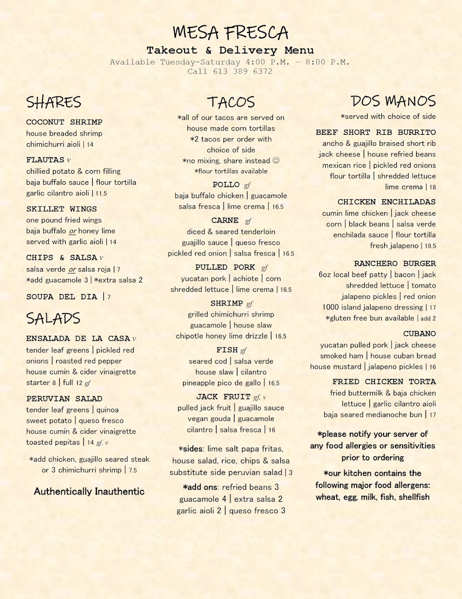 Mesa Fresca Kingston Menu