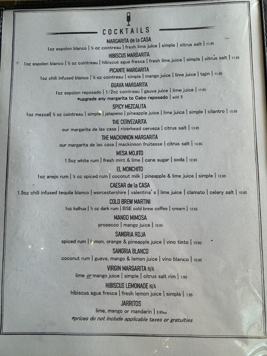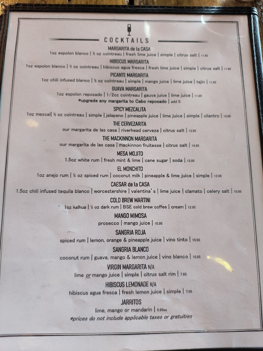 The menu at Mesa Fresca Kingston offers a well-curated selection of Mexican-inspired dishes and drinks, designed for casual dining and relaxed gatherings. It features a variety of small plates, tacos, and heartier entrees that blend fresh ingredients with bold, balanced flavors.